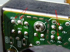 仮接続でやってみたら、一応テープ、AM/FM等の音が出ました。(左上写真<クリック>)