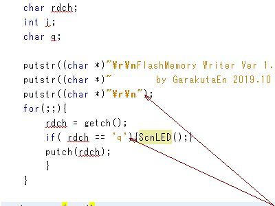 擬似信号旗”を設けて、何処までプログラムが走ったかを、LEDの点灯状態を見て、問題箇所を見付けた。(図2<