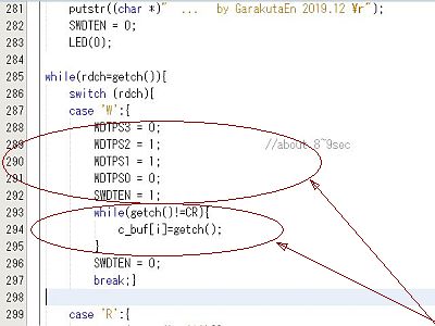 これは、偶々、WDT(ウォッチ・ドッグ・タイマ)を働かせようとし、その時間を最短にした時に、いきなりリセットが掛かったので、こいつが「プログラム・リセット」として使えることを知った/発見したわけ。