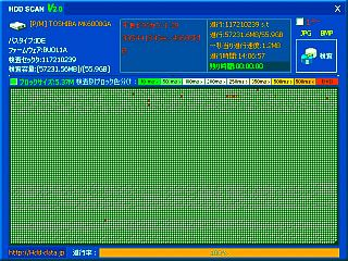 WinXpを載せられたので、「HDD SCAN」を走らせてみた。(左図)