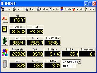 PC全体の評価をするのに、HDBENCHをよく使わせて貰うのだが、このALL値は、実用上の体感速度に良く合っていると思う。