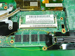 内蔵残分は、拡張メモリなし、無線LANカードなしの状態でした。(左写真<クリック>)