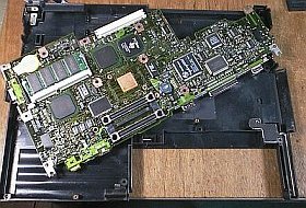 基板には、NeoMagic社のグラフィックス・チップやTI社のPCIバスコントローラなどが見えましたが、別段変わった所はありませんでした。(なんだ、つまらん!)