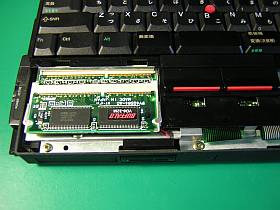 有り難い事にメモリ・スロットはちゃんと付いていたので、32MB-EDOを2個乗っけてみました。内蔵分と合わせて、計72MB。お約束通りです。