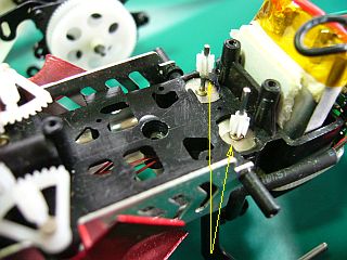 結局、この赤色の機体は、今は修理成らず。(この「小ギア」が、軸に固く固定出来さえすれば、OKなんだがなぁ...と思いつつ、中断)