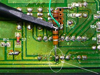 これを、5V(USB電源)で動作させる方法を模索し、電源経路に入っている抵抗成分を、最低2箇所ショートすれば良い事が分かった。(左写真<クリック>)