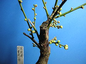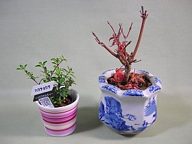 先日、「吉野路黒滝(道の駅)」へ行った時、売店で見掛けた「鉢植え」の形・枝振りが妙に面白く感じられたので、「玉牡丹(タマボタン)」(\800)と云うのを一鉢買って帰った。(左側)