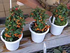 その中で、赤色と黄色の実を混載?してあった「ピラカンサス」は面白そうだったんだが...でも、弾けて萎びた実は、黒くなって哀れな姿だったので、惹かれながらも潔く諦めた。(これは、毒草だそうだ)