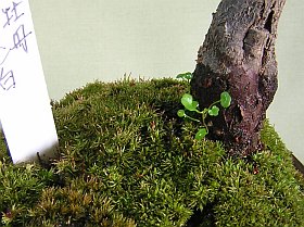 先に「玉牡丹」を買った際、傍に小振りの(孔の開いた/壷状の)苔玉があった。どうやらこれで木の根を包んで小鉢に押し込むらしかった。
