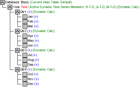 Each database member can have one or more formulas associated with it in the database outline. For example, the Variance members of the Scenario dimension, as shown in Figure Figure 2, contain formulas. Formulas can be simple or complex. For more information, see the Database Administrator's Guide.