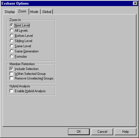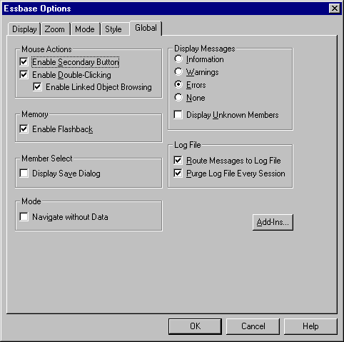 - For information about each option in the Essbase Options dialog box, see the