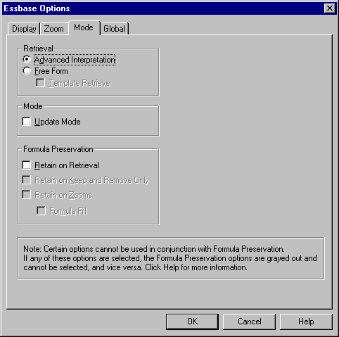Essbase Options dialog box.