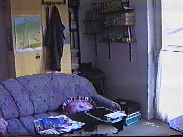 Couch, Bücherregal und Balkontüre vom Schreibtisch aus |