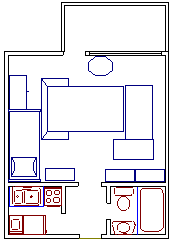 Blick vom Zimmer richtung Vorraum ins Bad. |