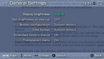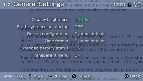 - various settings regarding PSP power saving in USB mode (turning off screen, reducing clock speed, etc. after a user defined idle timeout)
