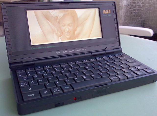 The ASI Pocket Personal computer (if its a clone of the Memorex or vice-versa is unknown) would probably have made it to the top of my list of my favorite DOS-based palmtop PCs if it wasn't for some flaws that can be annoying. The ASI Pocket Personal computer is identical to the Memorex Commuter Computer. If you want to know more details then check out the Memorex page. The ASI is the same just a different branded model. Seems ASI was one of these companies that got bought and sold so often that it is hard to keep track on them. In the early 1990s they were merged/married/widowed with old eastern German Robotron. ASI originally meant "Aquarius Systems International". Aquarius seems to have been a Taiwanese company, they also bought or merged with a korean company and so on and so on. In the end i guess the ASI Pocket Personal computer comes somewhere from Taiwan. The name "ASI" is far from original, so if you search a bit you come up with Canadian, Australian and American companies that have nothing to do with it. The eastern german Factory was eventually sold to Fujitsu and whoever bought it after that. Like the Memorex the ASI Pocket personal Computer is a bit slow.